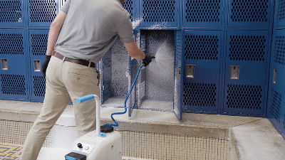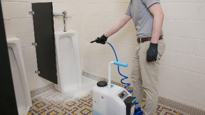 5 gallon lithium-ion battery-powered, portable, pre-mix foam unit. Equipped with 4 wheels, coiled tubing, and heavy duty trigger gun.